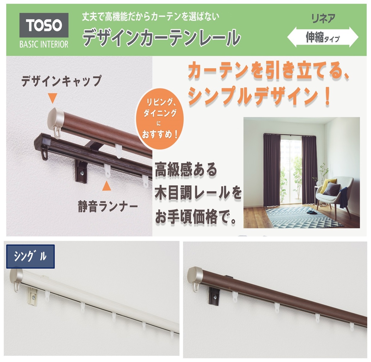 Toso ウッディ28 カット無料 カーテンレール シングル Teriteri